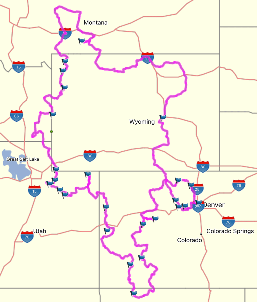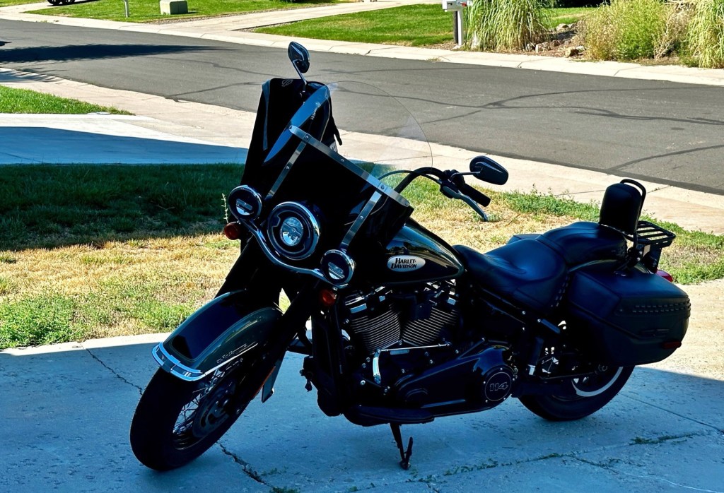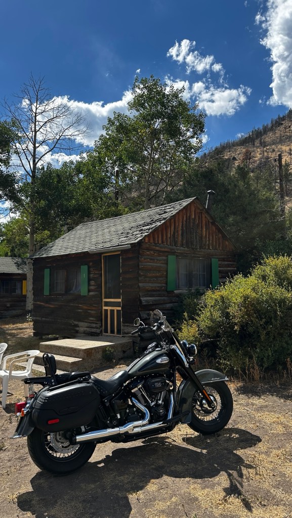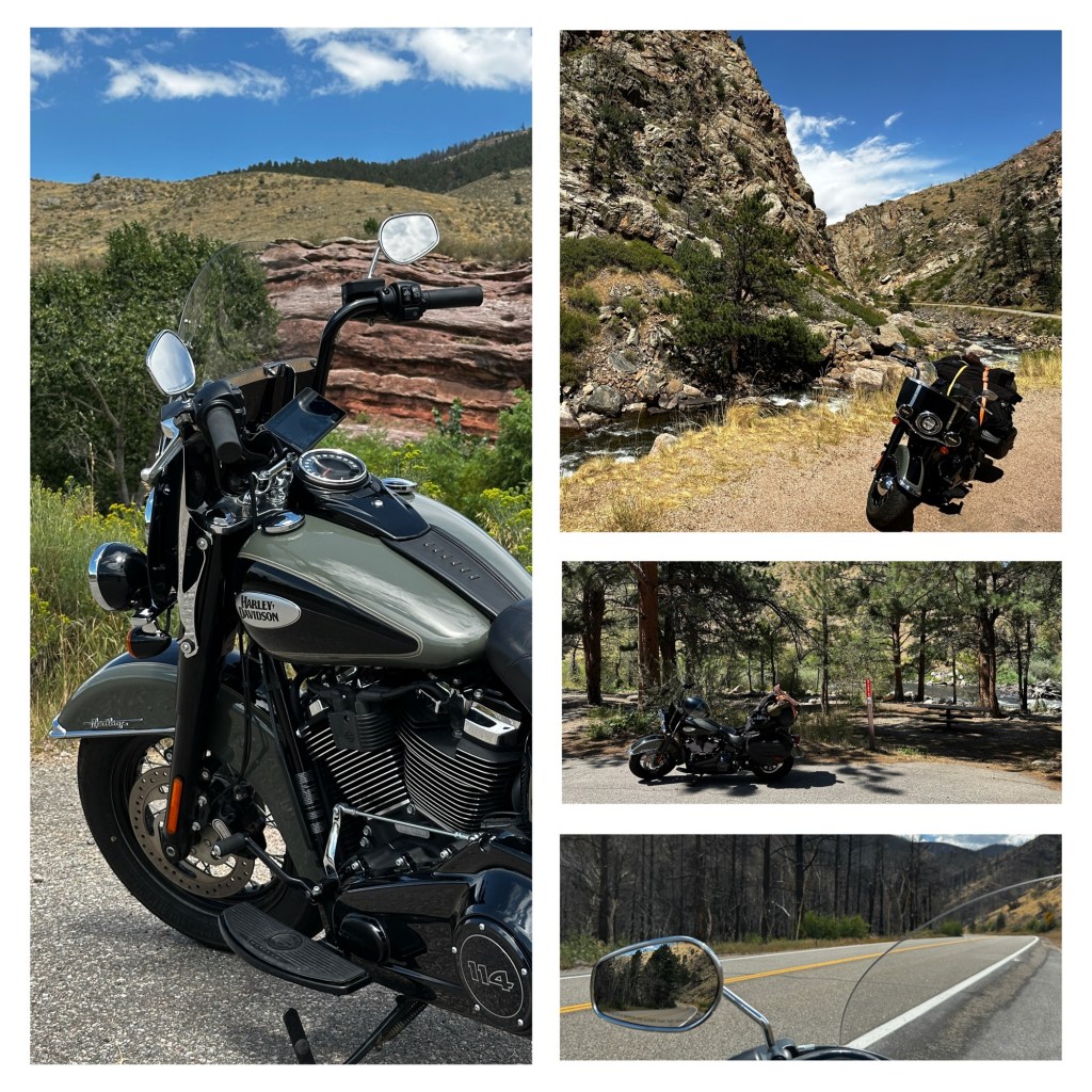 Harley Heritage 114 Get used to the bike while riding out of Denver … not nice but necessary. Fortunately the hills start soon – and the Hwy 14 is beautiful.