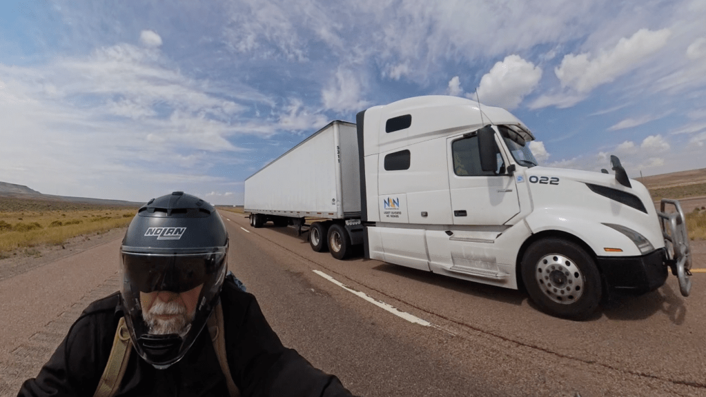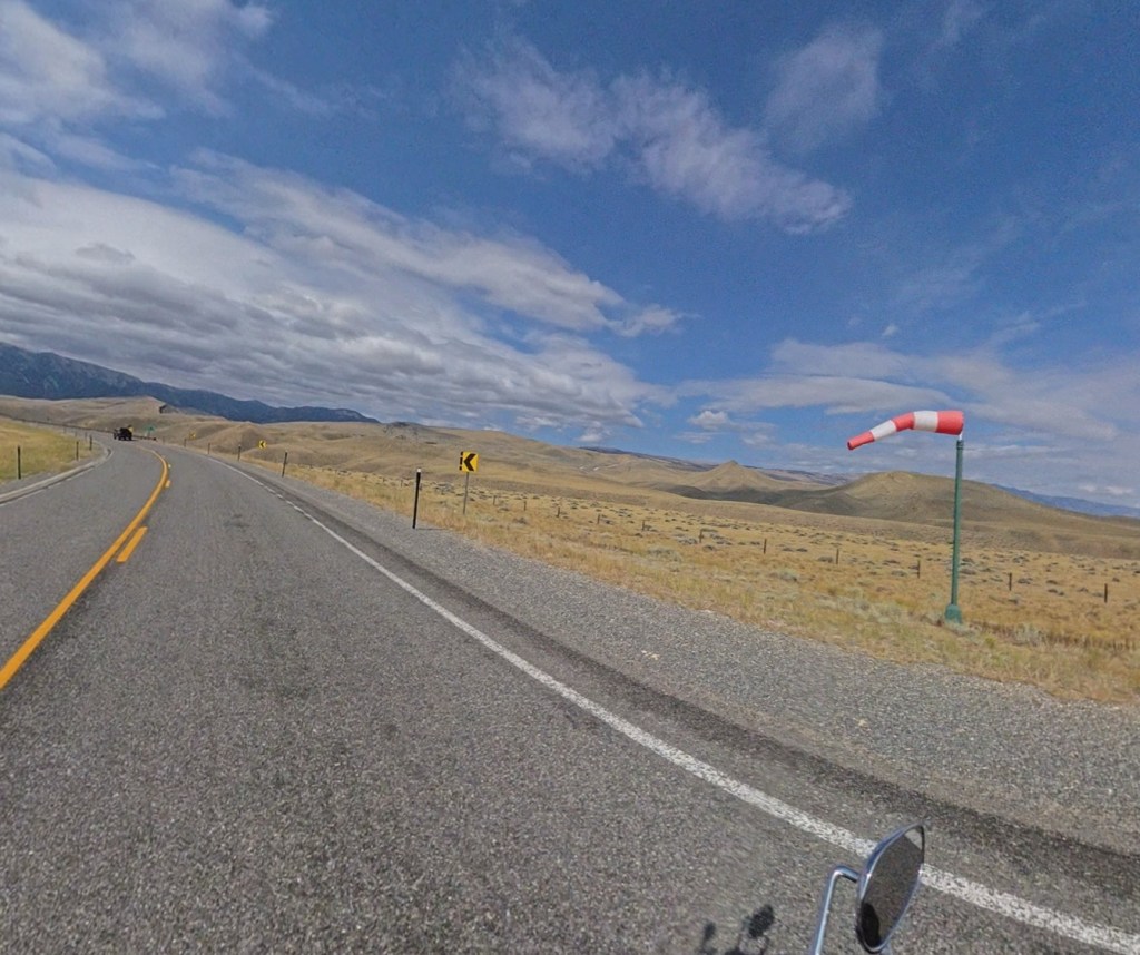 Meanwhile I’ve learnt, that South Wyoming is one of the windiest areas. You could lean the bike into the wind, if (!) there would be no gust and sharing winds. It is no fun and unpredictable.