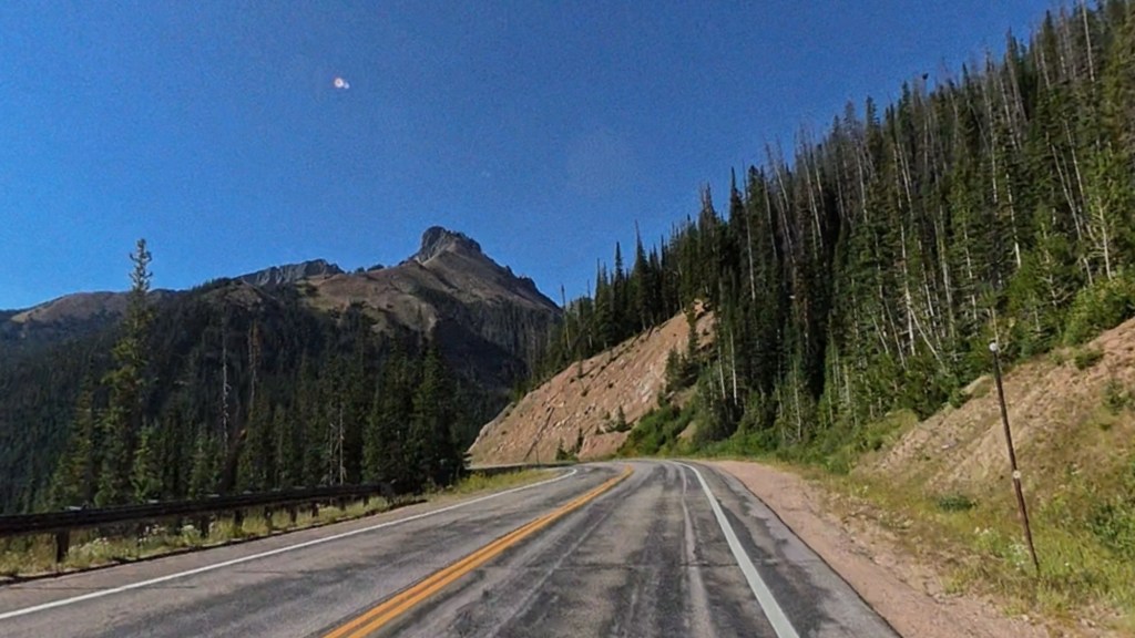 For Beartooth Pass (US Route 212) the road is getting worse for the first miles. With an altitude of 10,947 ft (3,336 m) it is remarkable up there. Yeah, quite cold also. Nevertheless the curves and turns are wide and the speed limit even doesn’t allow real floating and leaning in the turns – if you respect it.