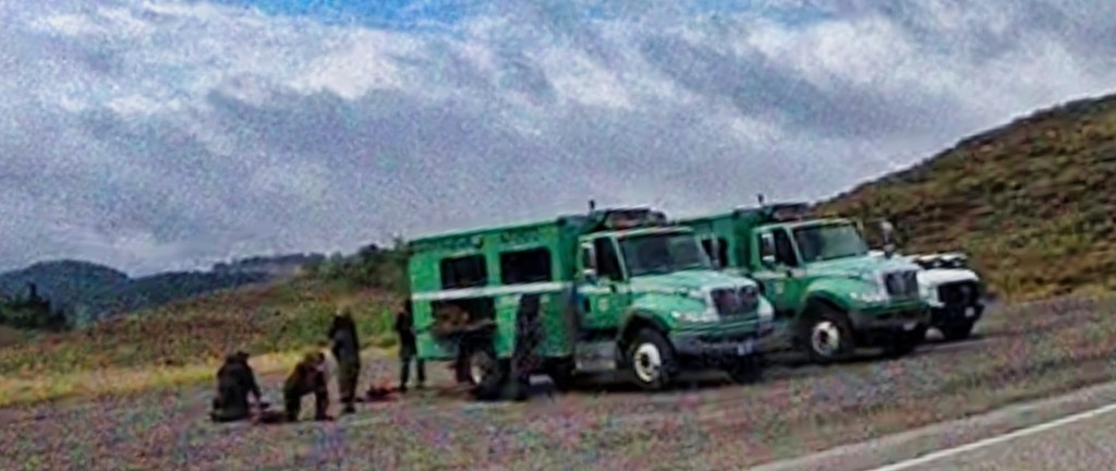 When entering from the North it is Bison area. And so it was. And it is a difference passing with a hard shell (in a car) then in a soft shell (on the bike).